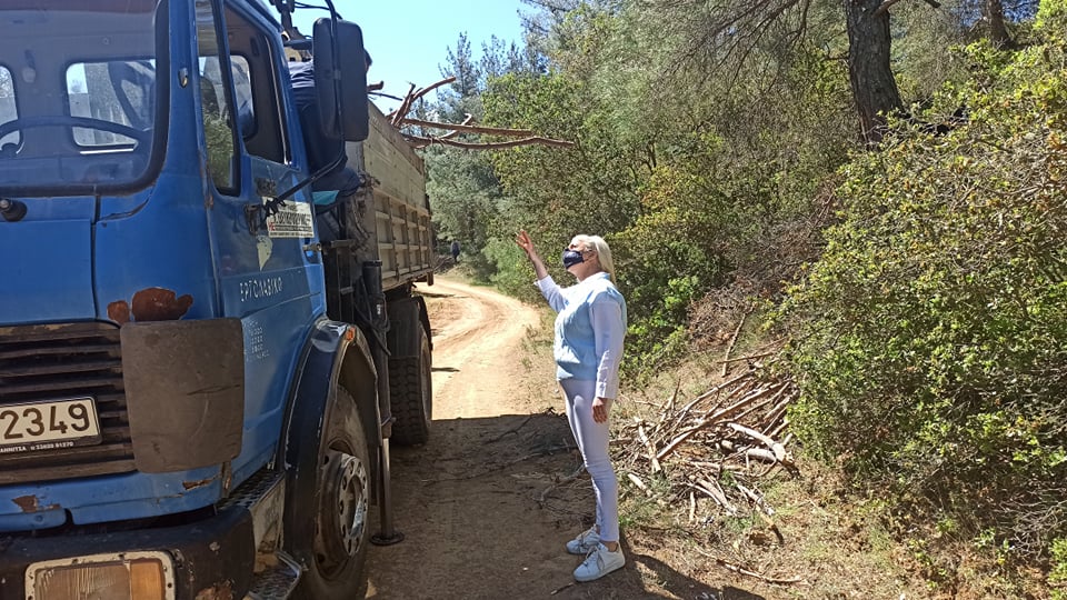 «Απομακρύνουμε τα κομμένα κλαδιά, αφενός διότι στα υπολείμματά τους έχει τη δυνατότητα να ζει το φλοιοφάγο έντομο και, αφετέρου, για να προστατέψουμε το δάσος από τον κίνδυνο της φωτιάς», τόνισε η κ. Δημητριάδου.