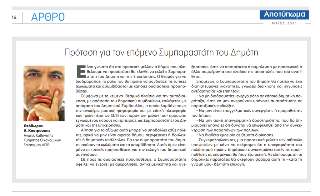 Άρθρο στην εφημερίδα “ΑΠΟΤΥΠΩΜΑ”