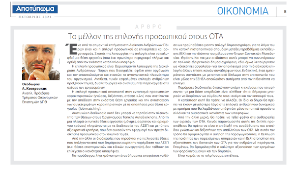 Άρθρο του κ. Κουτρούκη στην εφημερίδα Λαγκαδά – Ωραιοκάστρου. “ΑΠΟΤΥΠΩΜΑ”