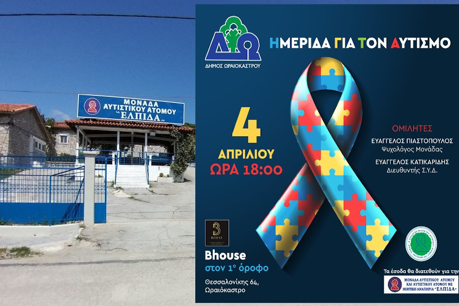 Ημερίδα για τον αυτισμό με φιλανθρωπικό σκοπό διοργανώνει το Τμήμα Κοινωνικής Προστασίας και Δημόσιας Υγείας του Δήμου Ωραιοκάστρου.