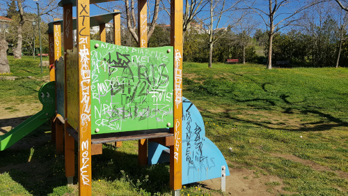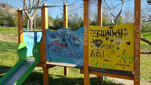 Πέντε ημέρες μετά το ρεπορτάζ για την άθλια εικόνα του χώρου (https://politesoraiokastrou.gr/?p=12735) και μετά τις διαδικτυακές δεσμεύσεις του Δημάρχου Ωραιοκάστρου, Παντελή Τσακίρη, για άμεση παρέμβαση στο πάρκο, ο επικίνδυνος ξύλινος φράχτης ξηλώθηκε, η περιοχή καθαρίστηκε, ωστόσο, η ασχήμια των συνθημάτων πάνω στις ξύλινες, στις μεταλλικές και στις πλαστικές επιφάνειες των παιχνιδιών παρέμεινε.