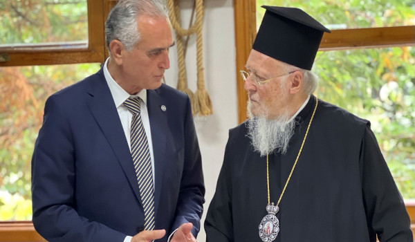 Στο πλαίσιο της επίσκεψής του στον Πόντο, ο κ. Αναστασιάδης παρέστη στον Μέγα Εσπερινό της Κοιμήσεως της Θεοτόκου στον Ιερό Ναό της Αγίας Μαρίνας στην πόλη της Τραπεζούντας, στον οποίο χοροστάτησε ο Οικουμενικός Πατριάρχης παρουσία και του κ. Ελπιδοφόρου.