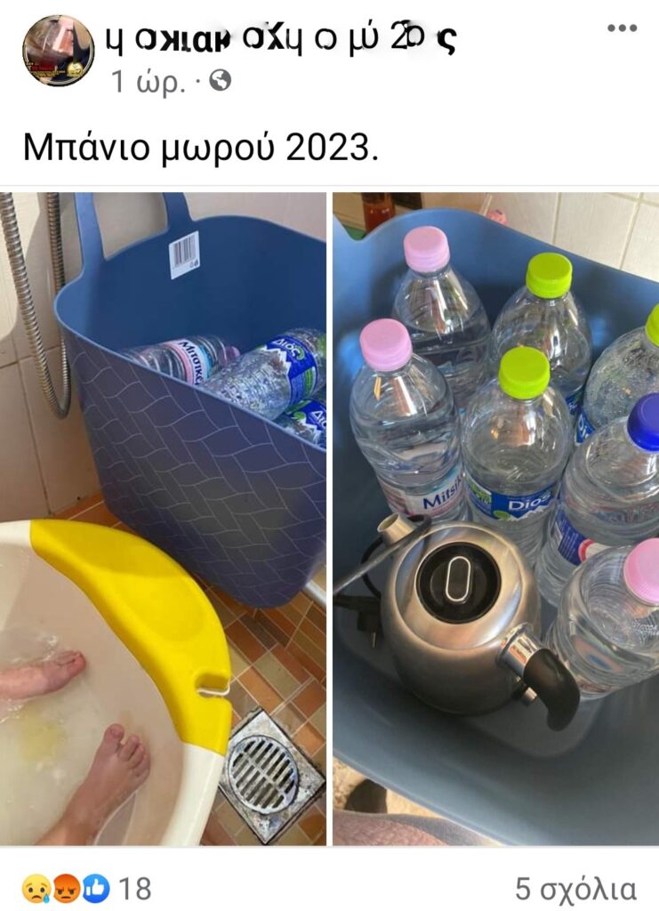 «Μπάνιο μωρού 2023» αναφέρει συμπυκνωμένα και λακωνικά. Είχε προηγηθεί η δημοσίευση μιας γυναίκας από την ίδια περιοχή η οποία σημείωνε με αγανάκτηση: