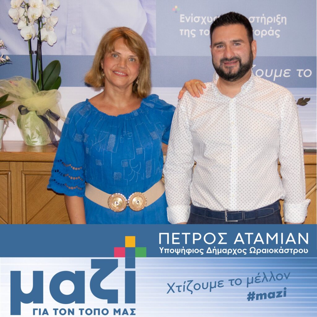 Αποφάσισα να συστρατευτώ με τον Πέτρο Αταμιάν, γιατί βρήκα στο πρόσωπό του όλα όσα χρειαζόμαστε για ένα καλύτερο Ωραιόκαστρο. Είναι ένας άνθρωπος αληθινός, με όραμα και φιλοδοξίες για τον τόπο μας, πρόθυμος να εργαστεί για τη συλλογική ευημερία. Επέλεξα να είμαι ΜΑΖΙ του για να βοηθήσω και εγώ με τη σειρά μου, στην εξέλιξη του τόπου μου.