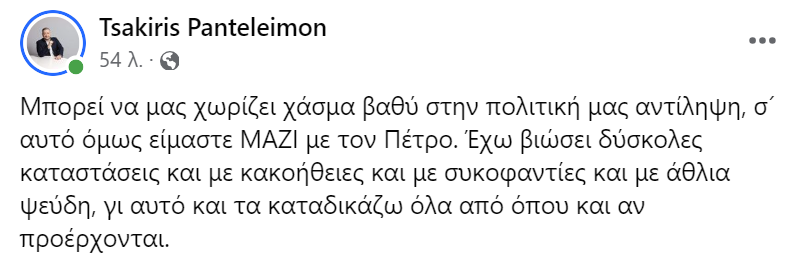 “ΜΑΖΙ” με τον Πέτρο Αταμιάν δηλώνει και ο δήμαρχος Ωραιοκάστρου, Π. Τσακίρης, ο οποίος επίσης με ανάρτησή του στο διαδίκτυο, τάσσεται στο πλευρό του πολιτικού του «αντιπάλου», σημειώνοντας πως έχει βιώσει παρόμοιες καταστάσεις (υπόθεση παρακολούθησης ιδιωτικής του ζωής;):