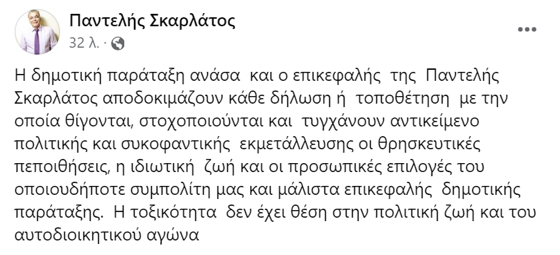 Αποδοκιμασία υπήρξε και από τον επικεφαλής της “ΑΝ.Α.Σ.Α” Παντελή Σκαρλάτο: