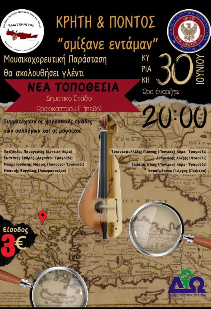 Η Ένωση Ποντίων Ωραιοκάστρου και Φίλων και ο Σύλλογος Κρητών Ωραιοκάστρου και Φίλων «Ερωτόκριτος» ενώνουν τις …δυνάμεις τους!