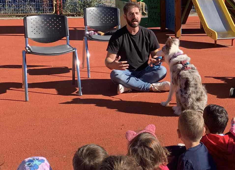 Ειδικός εκπαιδευτής μίλησε στα παιδιά και στους παιδαγωγούς, έχοντας για «βοηθό» την Τζο (φωτό), μια σκυλίτσα που τα σκυλιά συμπάθησαν αμέσως μόλις αντίκρισαν.