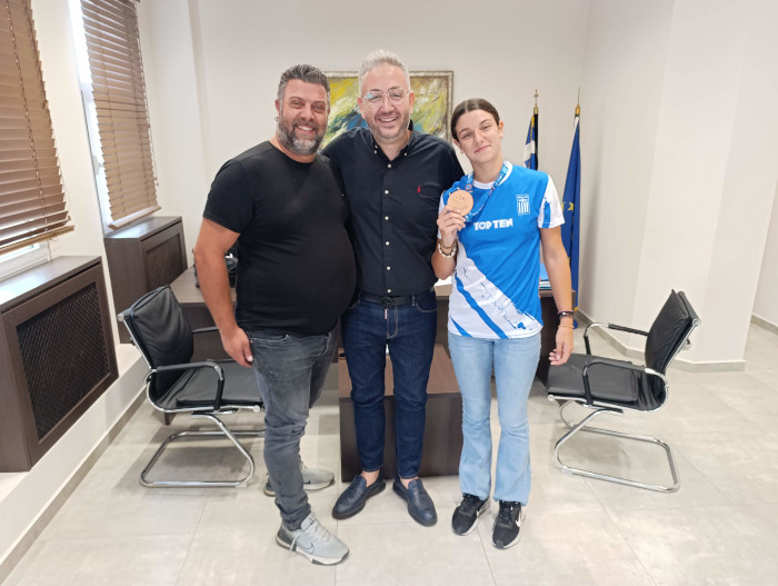 «Αλεξάνδρα σε συγχαίρω ολόψυχα, μας κάνεις υπερήφανους με τις σπουδαίες επιτυχίες σου. Το επόμενο διάστημα αναμένουμε να ολοκληρωθούν οι εργασίες κατασκευής του προπονητηρίου μαχητικών αθλημάτων στη Γαλήνη, ώστε να παραδώσουμε στις νέες και τους νέους του τόπου μας που ασχολούνται με τα μαχητικά αθλήματα έναν υπερσύγχρονο χώρο προπόνησης. Ως δημοτική αρχή είμαστε δίπλα σου και υποστηρίζουμε την προσπάθειά σου», είπε ο κ. Τσακίρης απευθυνόμενος προς την 14χρονη Αλεξάνδρα Κασιδεροπούλου.