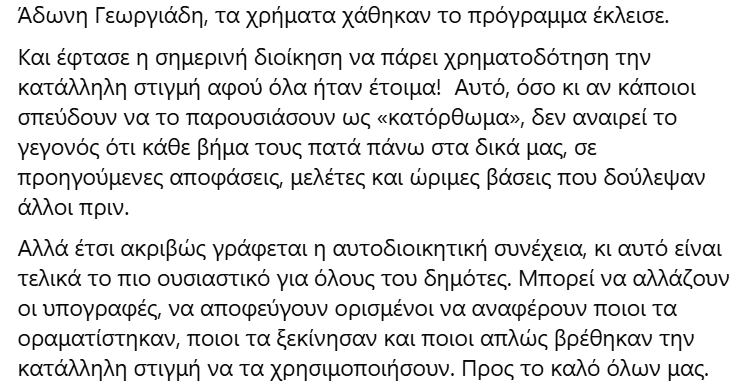 Ακολουθεί η ανάρτηση του πρώην δημάρχου: