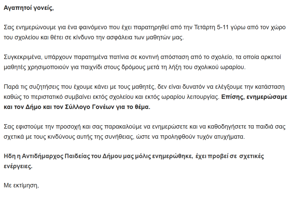 Ακολουθεί η ανακοίνωση του σχολείου: