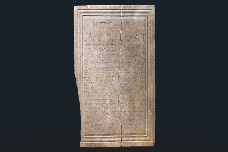 Στο πλαίσιο του θεσμού, που ξεκίνησε το 2017 και αναδεικνύει κάθε μήνα αντικείμενα με ξεχωριστή διαδρομή και ιδιαίτερη αφήγηση, για τον Φεβρουάριο παρουσιάζεται η επιγραφή με την οποία η πόλη τιμά τον γυμνασίαρχο και ευεργέτη της Μάνιο Σαλάριο Σαβείνο, έναν άνθρωπο που σε δύσκολες εποχές σιτοδείας στάθηκε δίπλα στους συμπολίτες του.