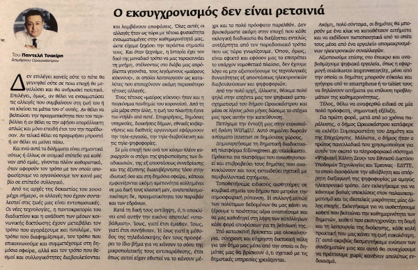 Ακολουθεί το άρθρο του Παντελή Τσακίρη: