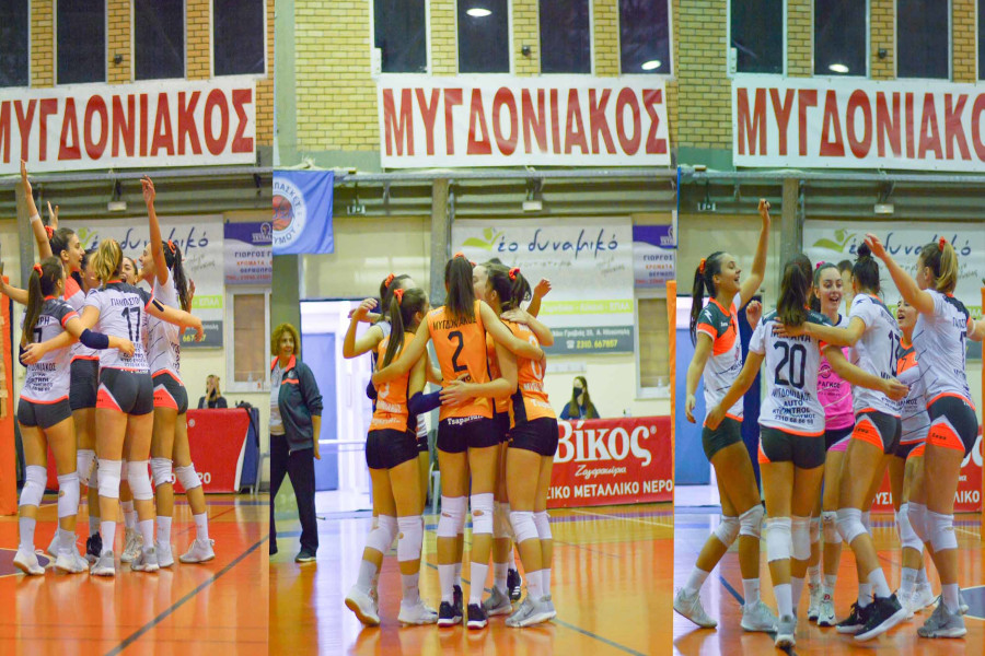 Στην έναρξη των φετινών πρωταθλημάτων των ομάδων των πορτοκαλί, οι αθλήτριες του Μυγδονιακού πέτυχαν ισάριθμες νίκες με το ίδιο σκορ 3-0, όλες στην έδρα του συλλόγου στο Δημοτικό Γυμναστήριο Μυγδονίας.