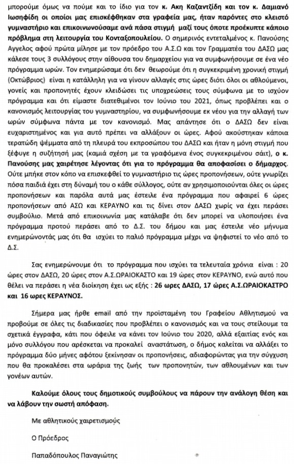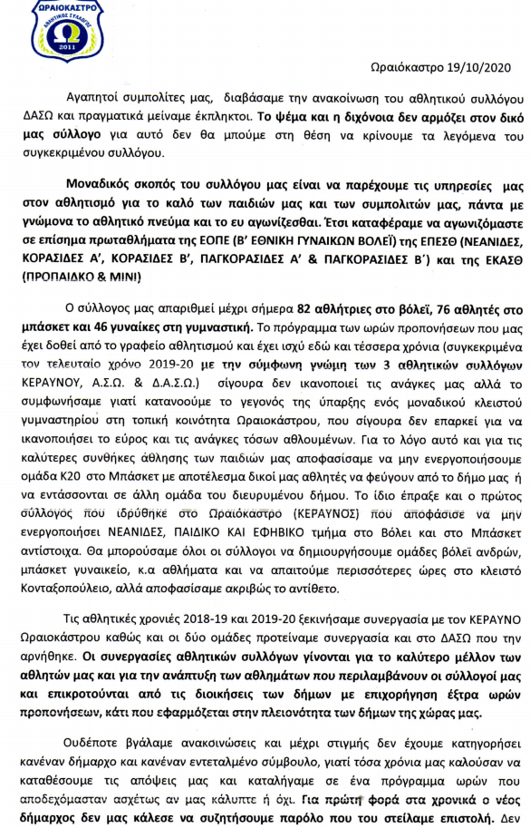 Ακολουθεί το δελτίο τύπου από το Αθλητικό Σωματείο του Α.Σ.Ω